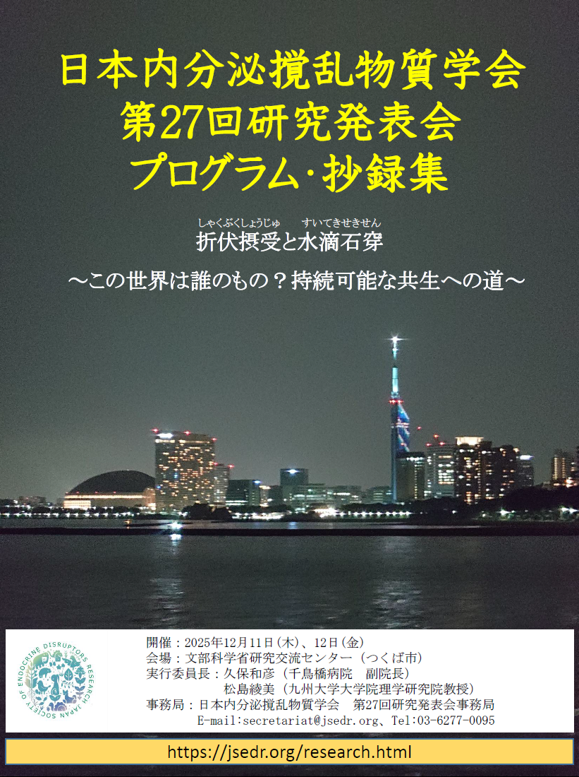 2025年12月11日から12日に文部科学省研究交流センターで開催された「日本内分泌撹乱物質学会 第27回研究発表会」にて平野が発表を行い、森田賞を受賞しました。